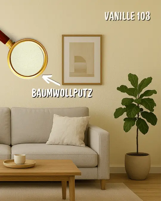Der sanfte Vanilleton schafft eine helle und gemütliche Stimmung, die Räume freundlich und harmonisch wirken lässt. Die voll durchgefärbte Oberfläche sorgt für eine lebendige und zugleich dezente Farbgestaltung.